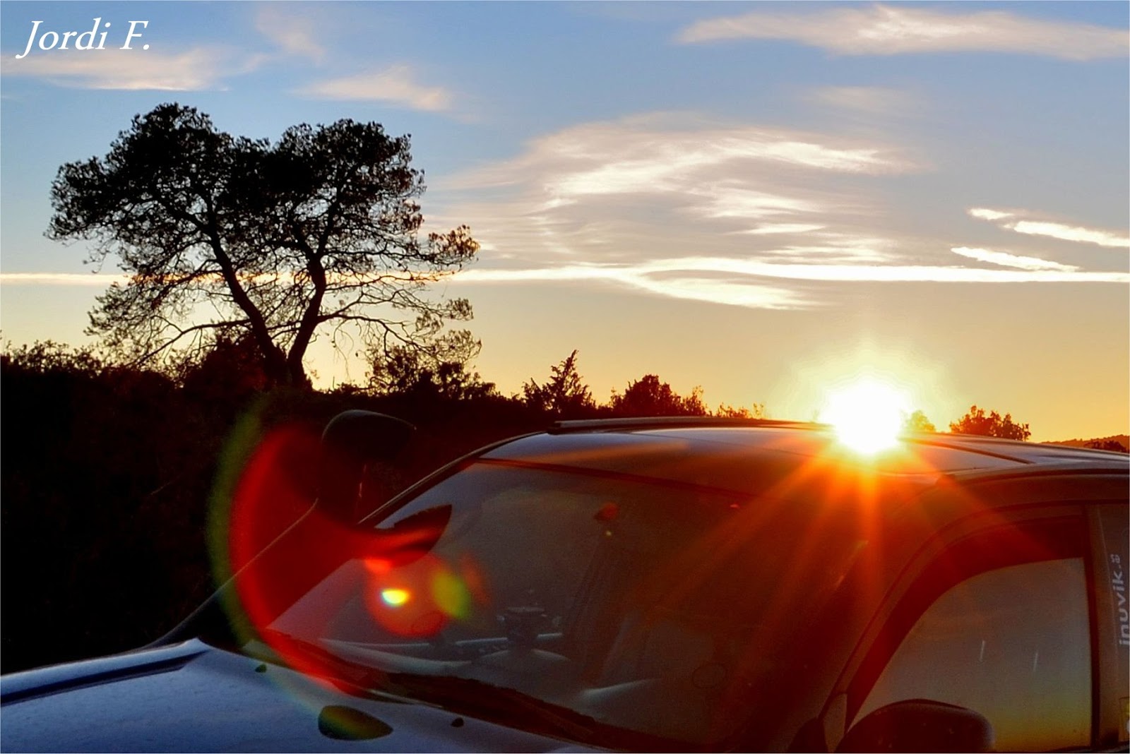 Existe un mirador por encima del Castell de Subirats... Existió una tarde, un tiempo y un sol que marcaba el fin del día... Apoyado en el cohe, tenía la cámara a mano.